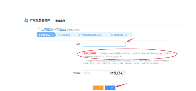 6、填寫字號、行業(yè)用語、企業(yè)類型及組織形式,然后選擇一個合適的公司名稱組成形式。
